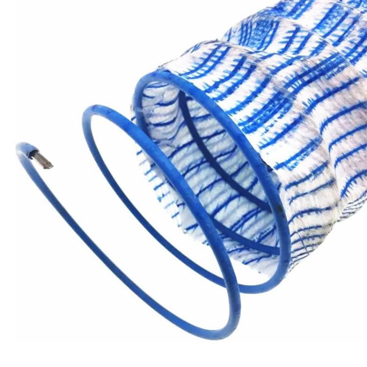 1.水平彈簧由高碳鋼絲制成,成為管道的主要支撐體。高碳鋼絲經(jīng)碳酸防銹處理后,涂上聚氯乙烯,表面完全隔絕空氣和水,不會(huì)氧化、生銹和腐蝕,提高了軟式透水管的使用壽命和物理性能。