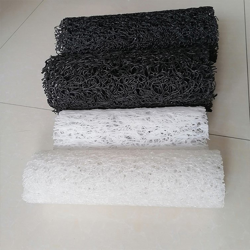 塑料盲溝是由塑料芯體外包裹濾布組式。塑料芯體是以熱可塑性合成樹脂為主要原料,經(jīng)過改性,在熱熔狀態(tài)下,通過噴咀擠壓出細(xì)的塑料絲條,再通過成型裝置將擠出的塑料絲在結(jié)點(diǎn)上熔接,形成三維立體網(wǎng)狀結(jié)構(gòu)。